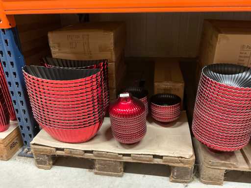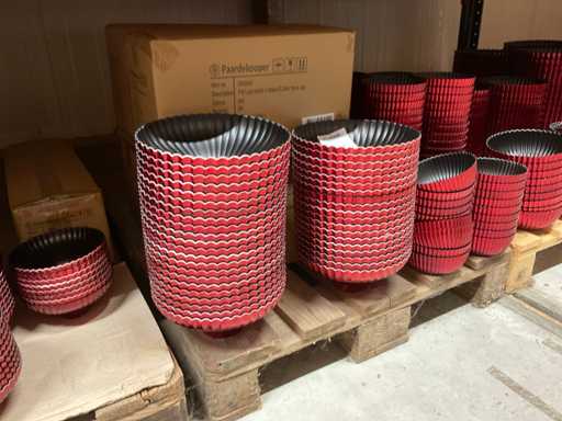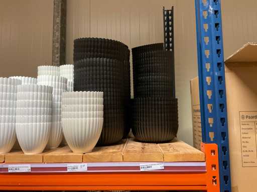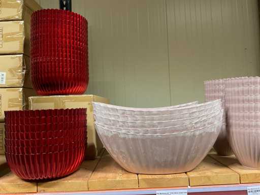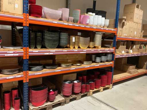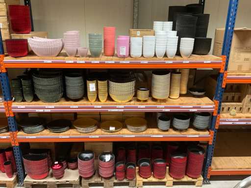 Comprend le contenu d’une section de rack comprenant différents types/couleurs de casseroles, bols et bols en plastique. Inclut 3 palettes. Y compris le rack