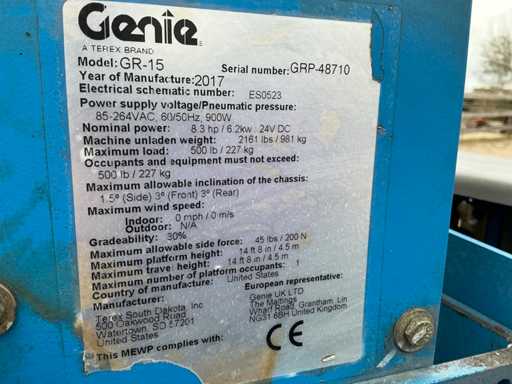 Plate-forme élévatrice Genie GR-15 2017