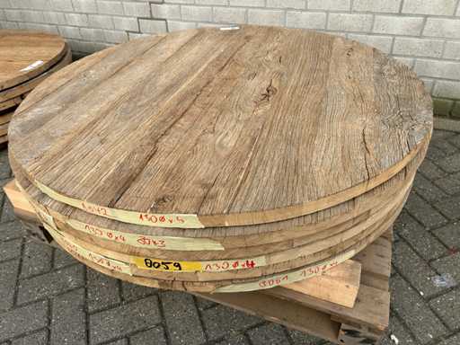 Plateaux de table ronds 130 cm. Ensemble de 6 pièces en chêne
