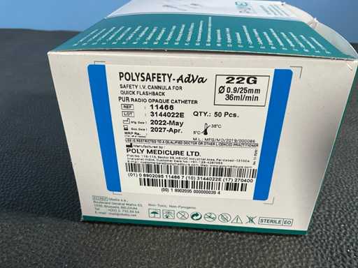 Polymed - Aiguilles intraveineuses sûres - Adva 22Gx25mm (BOX/50) (90x)