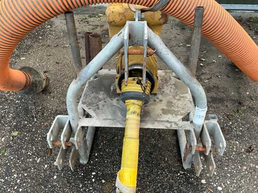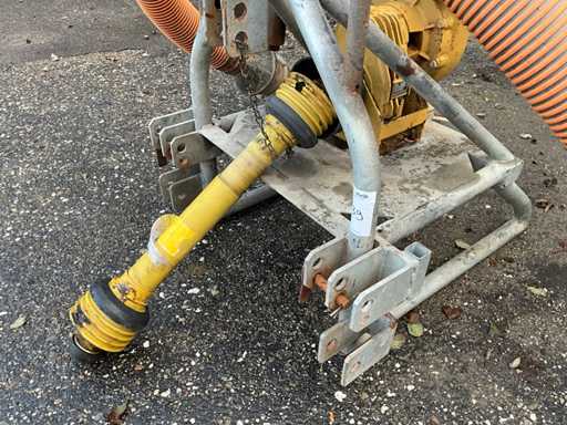 équipé d’une connexion à trois points, d’un entraînement à prises de temps libre, d’un tuyau d’aspiration de 5" avec panier,