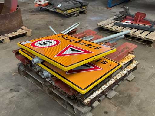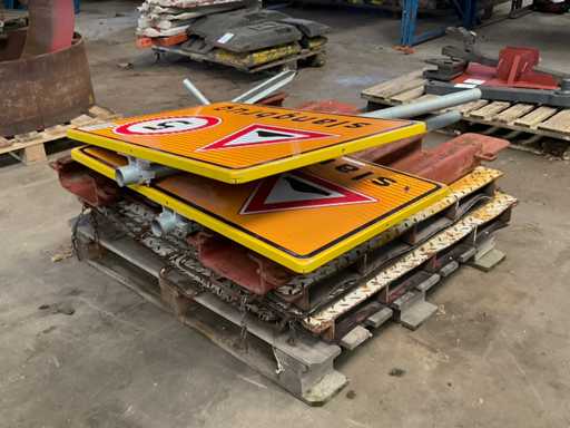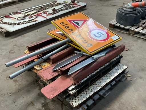 v.v. gouttières ; tableau de signalisation ; sur palette