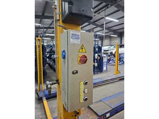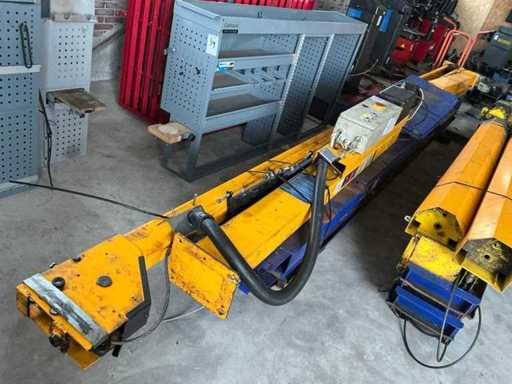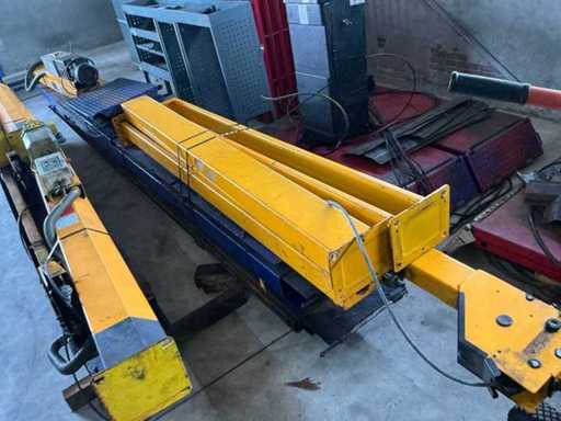 Élévateur de wagons démonté professionnellement longueur de voie 5200 mm, largeur entre les colonnes 2 950 mm.