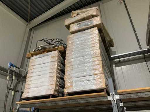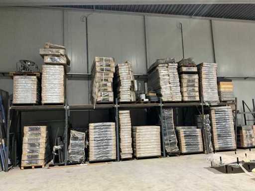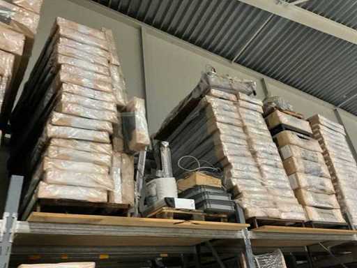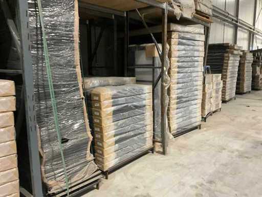 Porte-bandes avec divers boîtes de lit, têtes de lit et produits semi-finis
