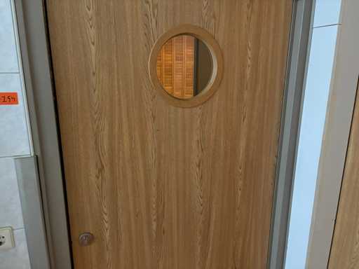 Revêtement en chêne clair avec cadre de fenêtre rond avec charnières et serrures
