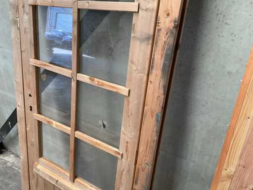 Porte extérieure en Douglas dans cadre vitré 192x85 cm. Remarque : Le seuil doit être collé. Livré SANS charnières ni serrures. Voir les photos pour plus de détails.