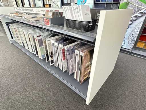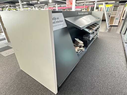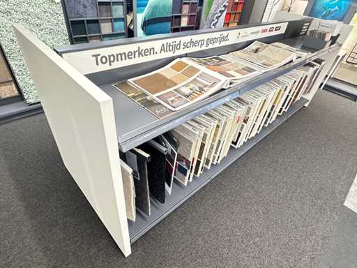 Cette unité d’étagères autoportantes en acier à double face est vendue hors échantillons.