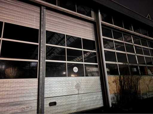 Porte composée d’un moteur d’entraînement ; panneau de contrôle ; rails ; panneaux de porte et ensemble ressort ; est démonté par le vendeur et préparé pour le transport ; récupérer sur rendez-vous ;