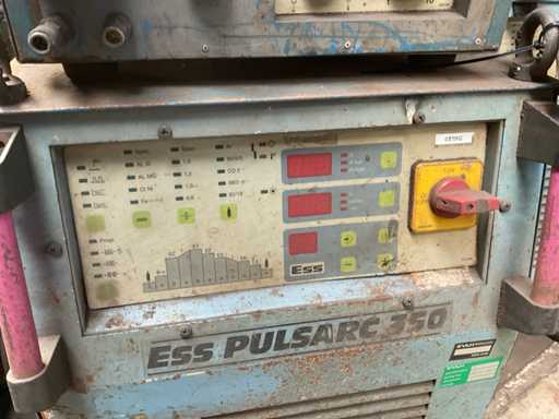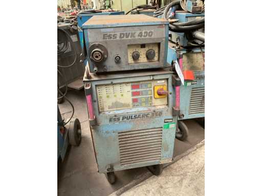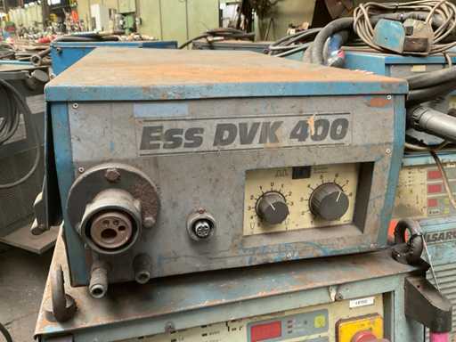 Cycle de service : 60 %, refroidi à l’eau. Equipé de : station d’alimentation en fil de soudage Ess, type : DVK 400. Sans torche de soudage.