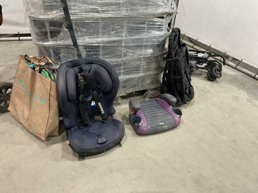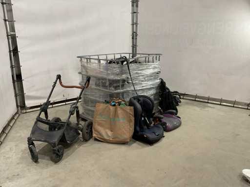 le lot se compose de poussettes ; sièges d’auto ; Parasols; Tentes; sans caisse métallique