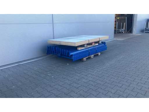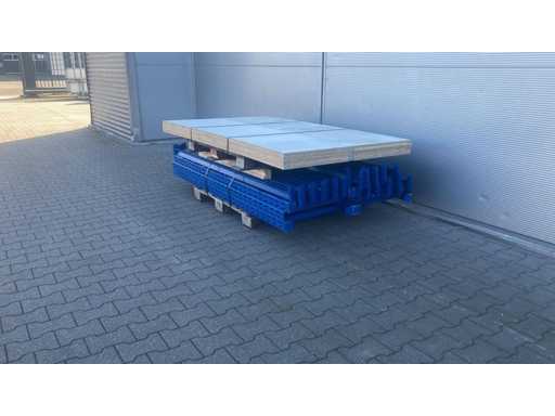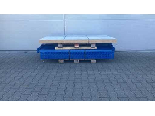 10x montant 2000x600mm ; faisceau 64x 2000mm ; La couleur des faisceaux peut être composée d’orange, de bleu, de beige ; Equipé d’incrustations en bois ; groupés de manière compacte pour le transport ;