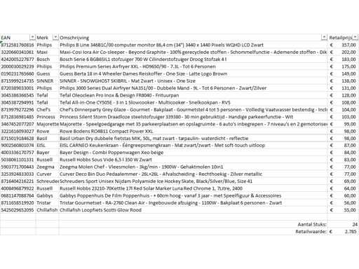 Il s’agit d’un lot de produits retournés de la marque A provenant d’un grand détaillant en ligne. Le lot se compose de différentes catégories de produits. Nombre de pièces : 24. Valeur de détail : 2785 €, - Non contrôlé : exploitation inconnue (mélange de fonctionnel, incomplet, endommagé, utilisable pour les parties). Venez le jour de la séance pour bien comprendre la raison du retour. Voir les photos pour la liste des contenus.