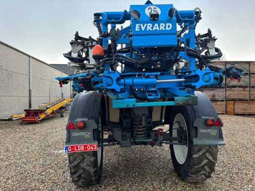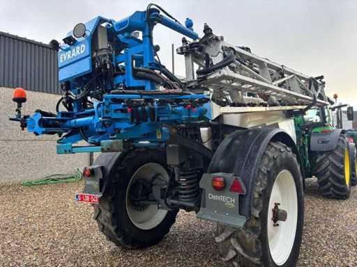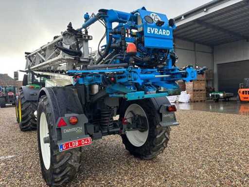 Pulvérisateur traîné Evrard Meteor en configuration complète, équipé pour un travail précis et performant en grandes cultures.