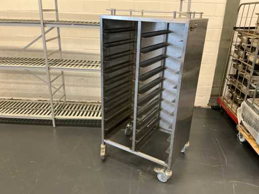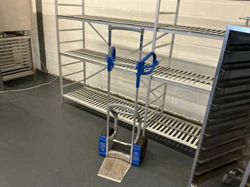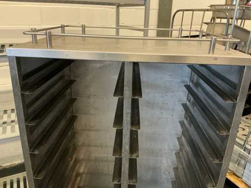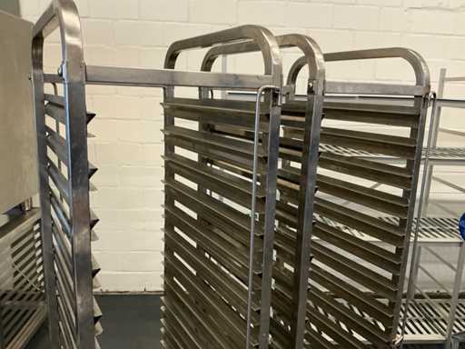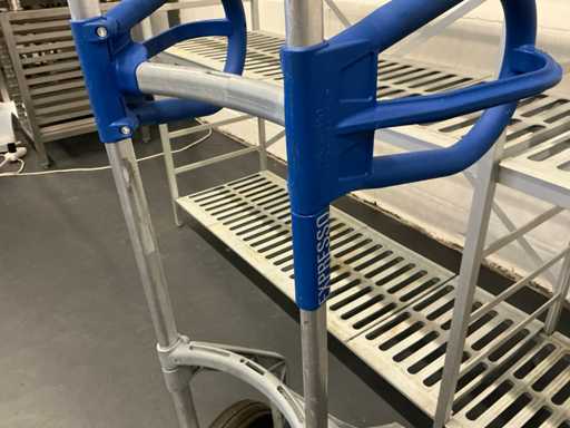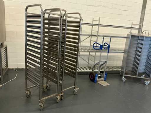 Equipé avec : diable expresso, support frigorifique 2980x500x1780mm, 2x chariot recrailleur 550x380x1730mm, chariot de rangement 740x550x1380mm