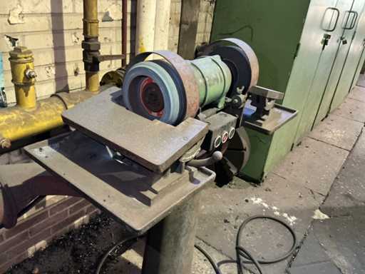 Sur socle et 1x unité d’aspiration Kiekens Dustmaster, rectifieuse taille 1 env. 900x450x1200mm, rectifieuse taille 2 env. 1250x600x1500mm, taille de l’unité d’aspiration env. 850x850x2250mm.