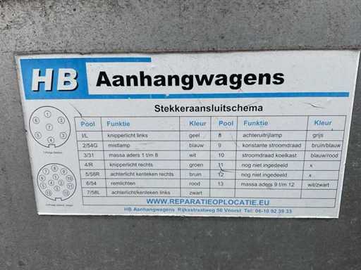 Équipé de : roue jockey, frein à dépassement, bougie à 7 broches, boîte à outils, volets latéraux, roue de secours.