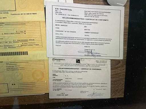 Documents présents : certificat d’enregistrement, certificat d’inspection, rapport d’identification, certificat de conformité
