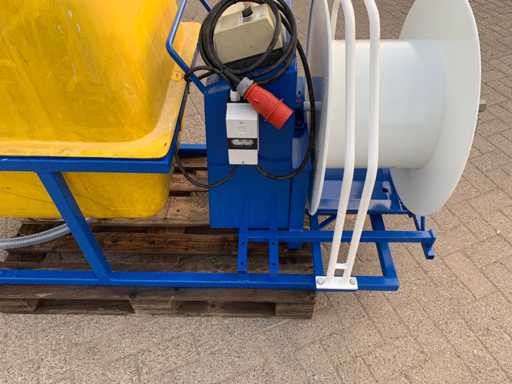 Avec télécommande radio avec antenne, pompe à membrane entraînée par moteur électrique de 400 volts, sur cadre en acier