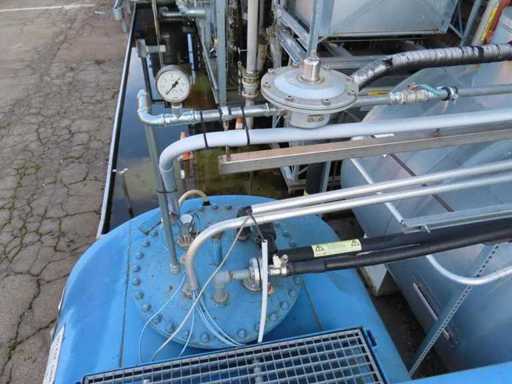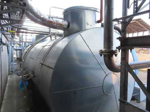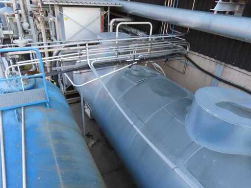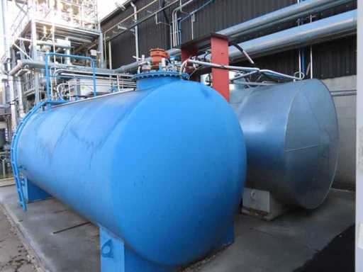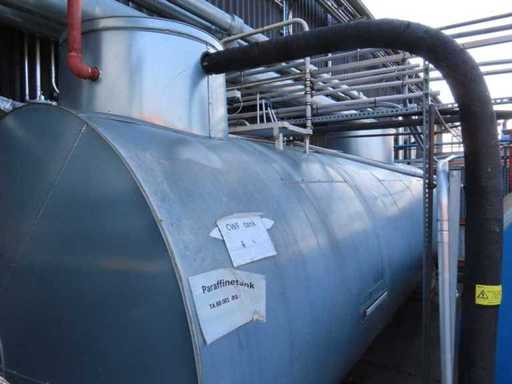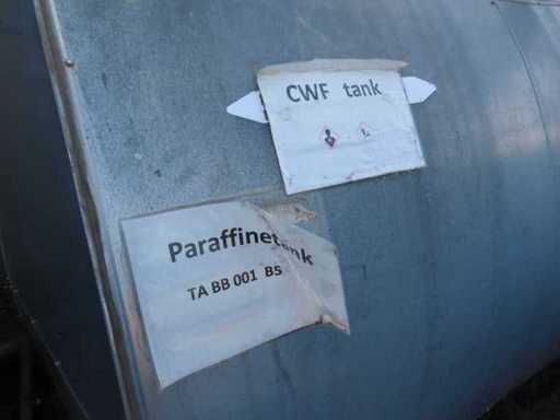 2 pièces, dont 1x double paroi avec une taille extérieure approximative : 7350x220 cm (LXDIA) utilisée comme stockage de paraffine et 1x réservoir simple paroi / décantation avec cloison intérieure d’environ taille extérieure : 520 x 200 cm (LXDIA) utilisée comme émulsion d’essence / eau (le réservoir de paraffine est dit avoir une crosse inférieure, le réservoir de décantation est dit avoir une boue d’essence / eau dans la première partie. Le réservoir doit également être transporté horizontalement.