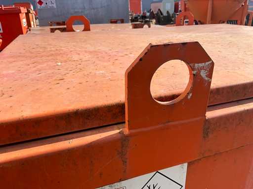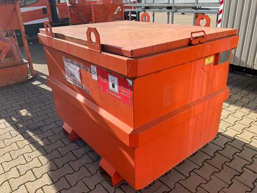 fentes de fourche pour chariot élévateur ; indicateur de niveau de remplissage ; capacité 0,995 m3 ; Serpents; couvercle à charnière ; 2x capuchon d’étanchéité ; lever les yeux ; état de travail non vérifié ;