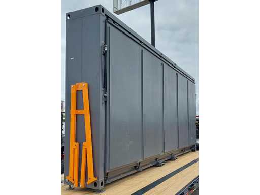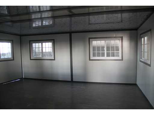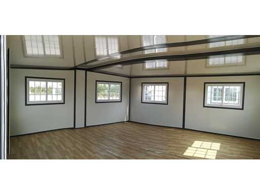 Equipé de parois et d’un toit rabattables isolés (15x20 pi), verrouillables avec clé et cylindre à bouton, cadres en plastique avec double vitrage, gouttière de drainage, palier