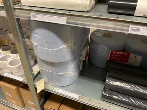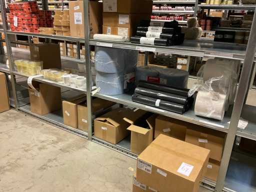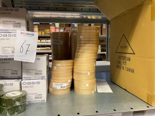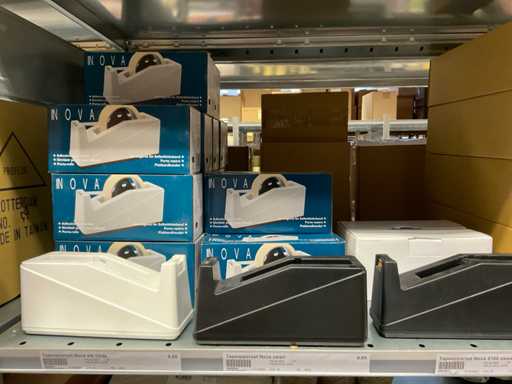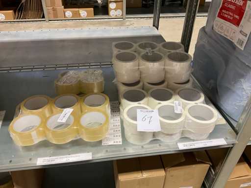 Composé de différents types de ruban adhésif, de différents types et tailles de sacs à ordures, de supports de ruban adhésif, de papier, etc
