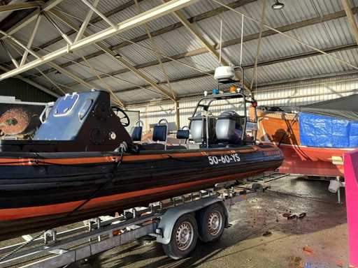 Équipé de 2x moteur hors-bord Yamaha FL150AET (150 CV). Incluant une remorque à bateau à double essieu. Marque : LBT. Plaque d’immatriculation de la remorque : 29-WJ-RG.
