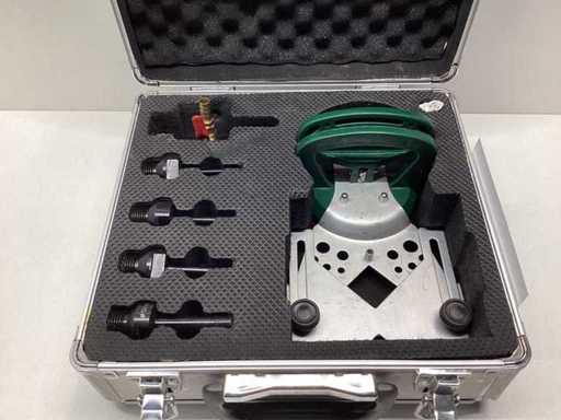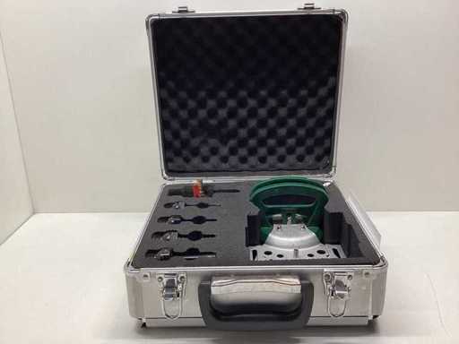 Le boîtier contient quatre mèches diamantées (6, 8, 10 et 12 mm), une aide au centrage et une tête de rinçage d’eau avec une connexion hexagonale de 13 mm.