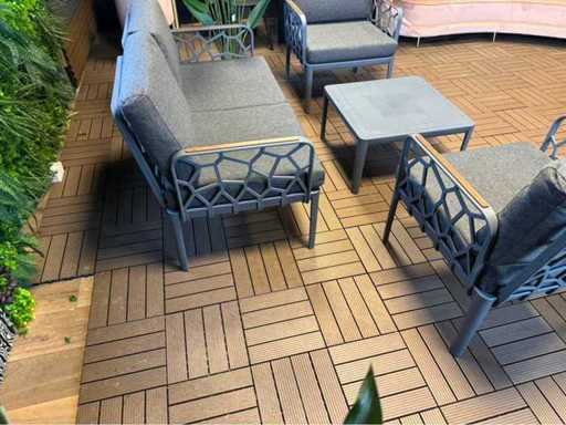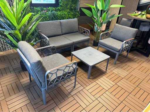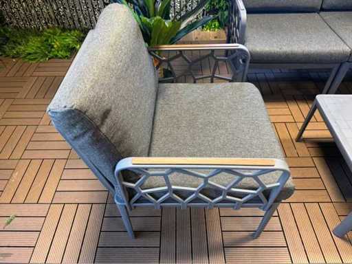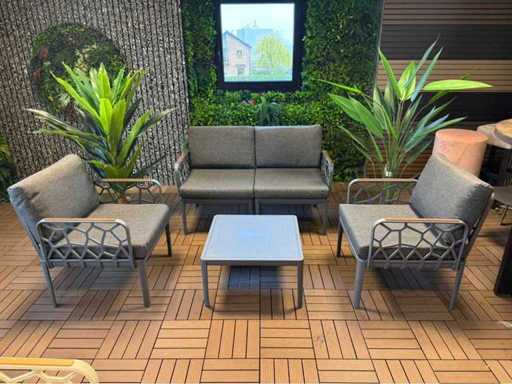 Un ensemble de salon inutilisé ; équipé de 2 fauteuils, d’un canapé 2 places, d’une table simple ; y compris des oreillers sur la photo ; Ça vient en boîtes