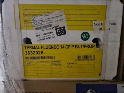 Le chauffe-eau à gaz TERMAL FLUENDO de 14 litres est un appareil conçu pour fournir un débit d'eau instantané de 14 litres par minute offrant ainsi une utilisation pratique et efficace. Spécifications techniques : Débit nominal : 14 l/min; Type de gaz : BUTANE / PROPANE; Régulation : mécanique; Réf: 3632028; Appareils neuf jamais utilisés;