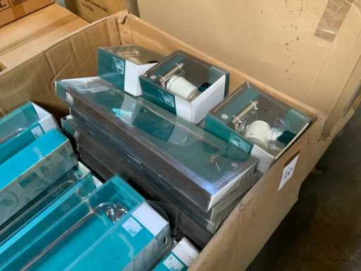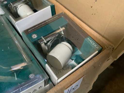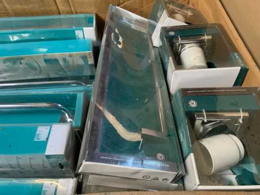 - Palletdoos gevuld met Haceka sanitair, onder andere handdoekhouder, zeepdispenser, beker met houder, etc.