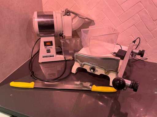 Un hachoir à fromage professionnel de la marque Santos et accessoires + couteau à fromage + machine à découper le fromage professionnelle.