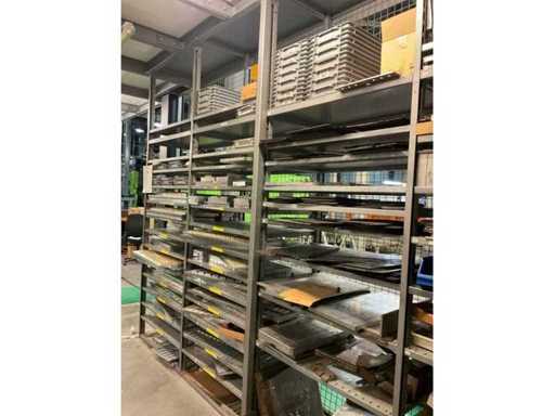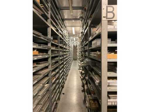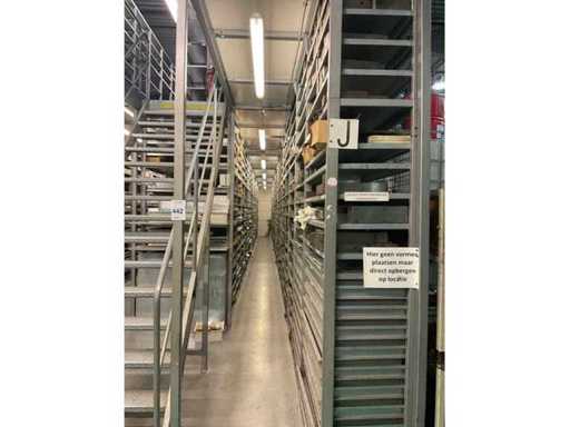 10 rangées d’étagères en acier composées d’une rangée de 19 sections avec des étagères et 22 tiroirs