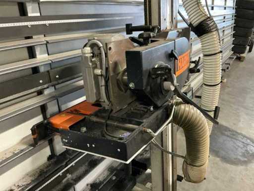 Longueur du mur arrière d’environ 9 mètres ; épaisseur de la scie environ. 0 - 10 cm ; Semi-automatique ; Vitesse 2800 tr/min ; Extraction Ø100 mm ; Peut couper verticalement et horizontalement