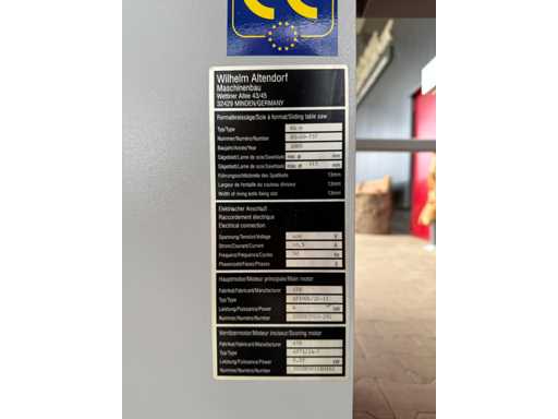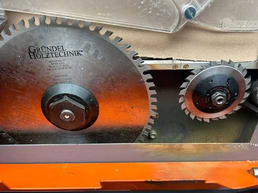 Moteur 4KW / avec machine à inciser et lame de scie Rapido / largeur de coupe de 105 cm / pivot jusqu’à 45° / culasse transversale avec une butée de longueur jusqu’à 260 cm