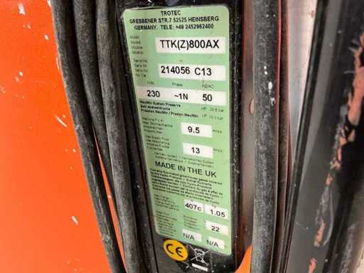 -> Selon le consignateur (Boels Rental), l’appareil a été vérifié et mis en état de marche avant la remise de la remise de l’appareil. Néanmoins, la vente se fait dans le cadre d’une vente aux enchères, sans garantie ni garantie.