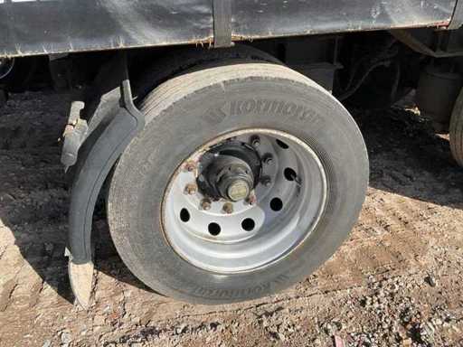 Le compteur kilométrique indique 907727 km. Élévateur monté sur camion prêt.