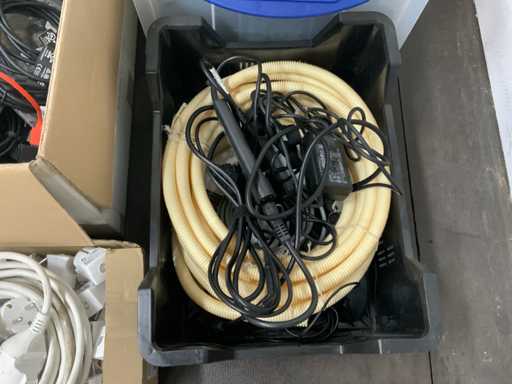 Composée entre autres de Draad ; câbles de données ; Câbles d’alimentation ; Plugs ; Étiquettes; Onduleur ; Prolongateur