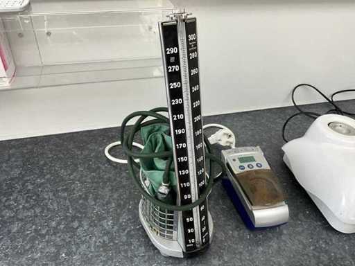 Un lot d’équipements médicaux et dentaires ; Sphygmomanomètre avec menotte ; mélangeur capsule amalgame ; mélangeur de capsules dentaires ; équipements de mélange de laboratoire ; utilisé en cabinet dentaire.