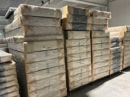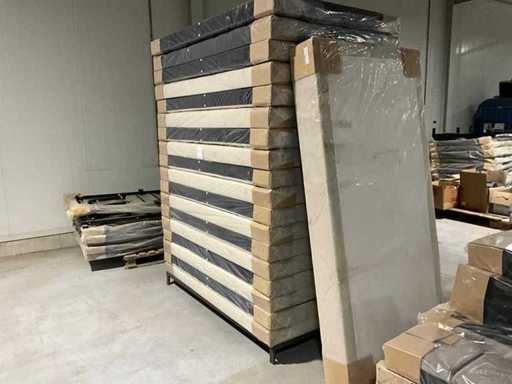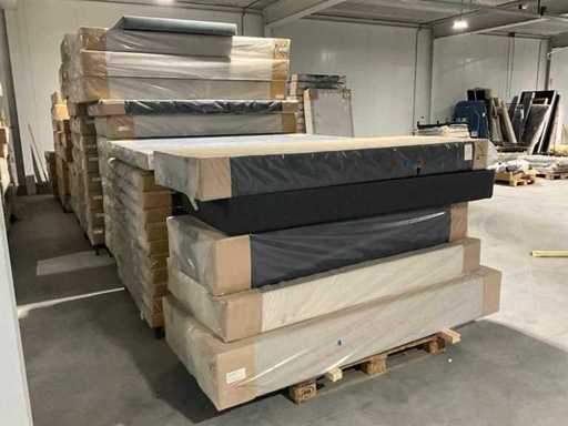 Environ 50 socles de lit et 25 têtes de lit. Sur 10 palettes, de différentes couleurs et longueurs.