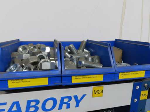 concerne 3 armoires d’assortiment avec contenu et tige filetée