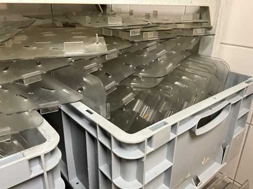Toutes les irrégularités et signes d’usure ne sont pas clairement visibles sur les images. S’il y a des objets neufs ou inutilisés, ce qui précède ne s’applique pas. Cependant, nous vous conseillons d’utiliser le jour de la visite en permanence pour vérifier et évaluer vous-même l’état et l’apparence du terrain. Toutes les palettes, caisses, chariots, sangles ou autres équipements internes (de transport) visibles sur les photos ne seront pas livrés avec le lot, sauf indication contraire dans des informations complémentaires.