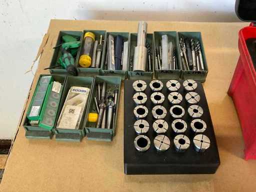 y compris des collettes ; Fraises, 1 pince de perceuse, 1 calibre à anneau de lissage (150,017 mm), fraises, inserts interchangeables et plaques à cliquer