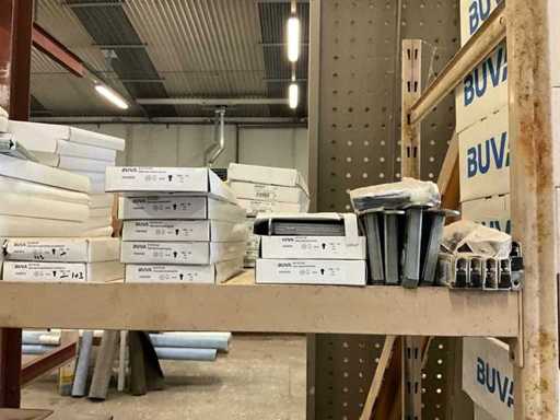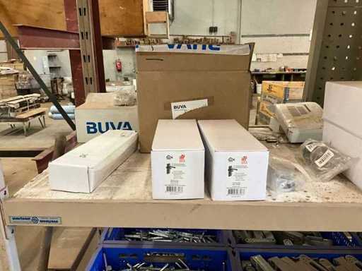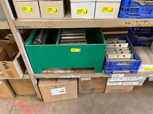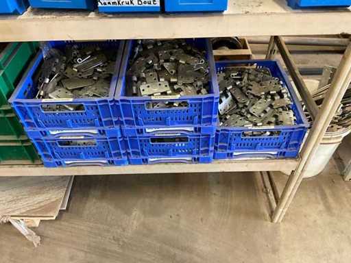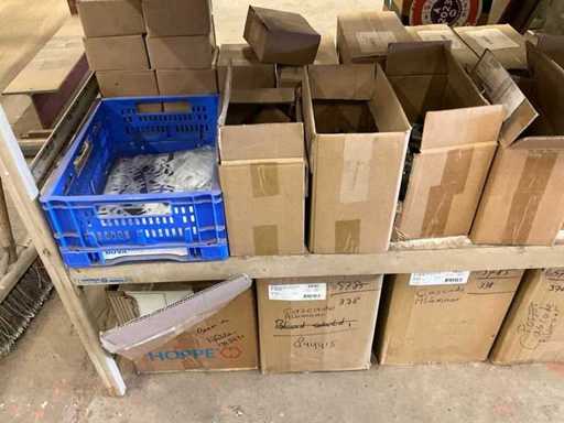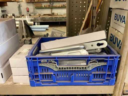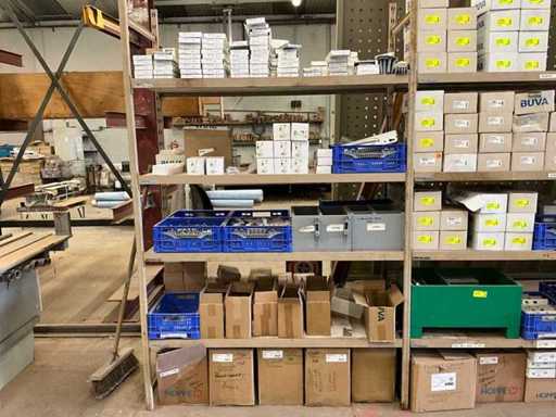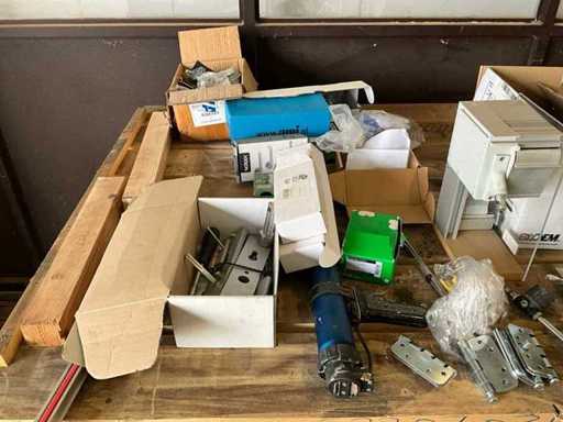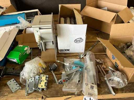 Concerne le contenu de l’énoncé (sans l’énoncé) ; comprenant, entre autres, une serrure à loquet Buva 6531/D-65 avec verrou à chuchote, des raccords de sécurité S2, des bassins de frappe, des poignées de porte, des blindages, des serrures de fenêtre, divers profils en caoutchouc, des grilles, etc