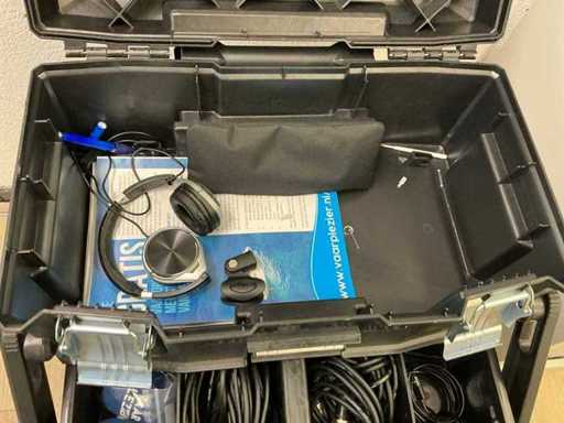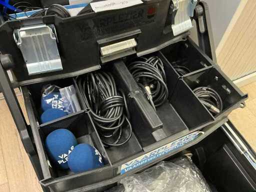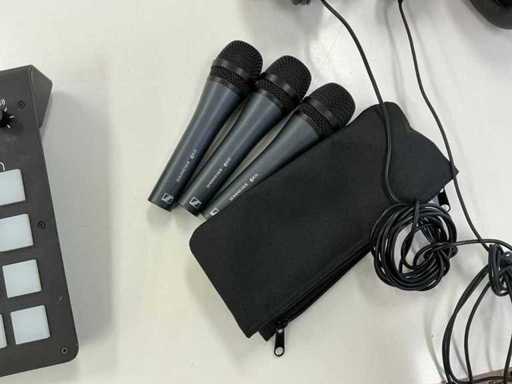Console de mixage Rode Aphex, 3 micros Sennheiser E835, 3 casques, 1 enceinte Devine Artis A8 MKII, 1x boîtier avec divers accessoires