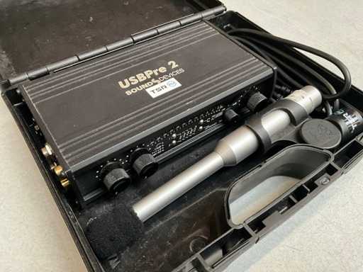 Composé de 1x USBPre 2 ; 1x câble USB A>B et 1x ECM8000 « Behringer » avec pince
