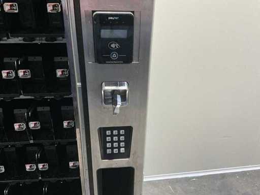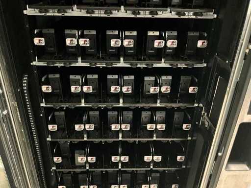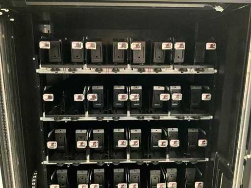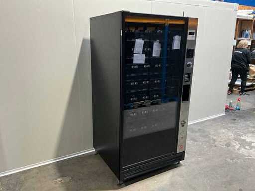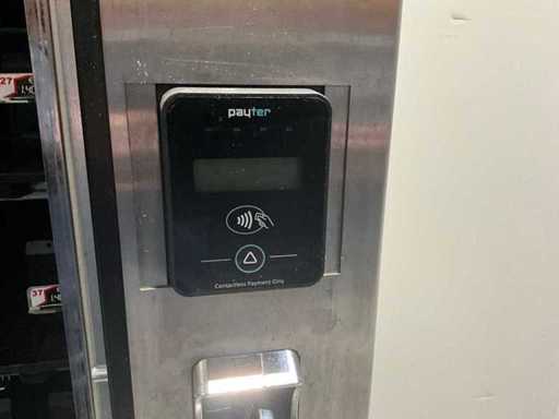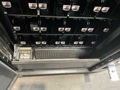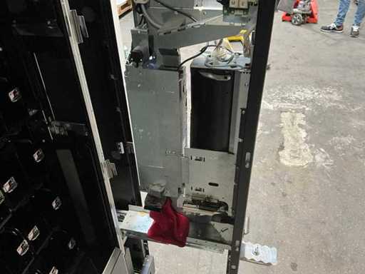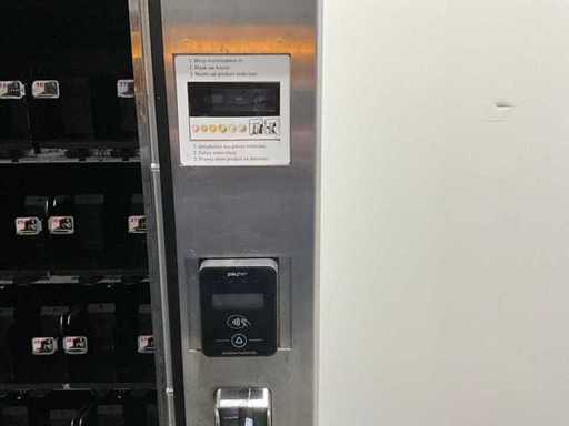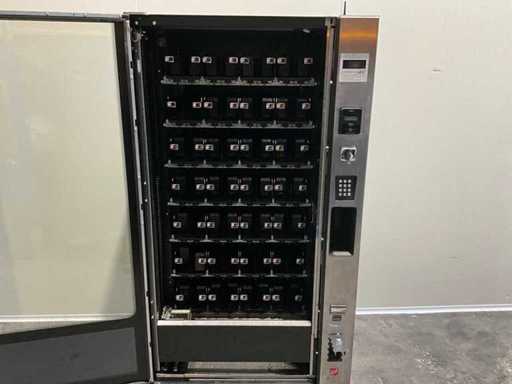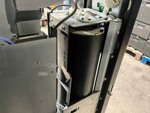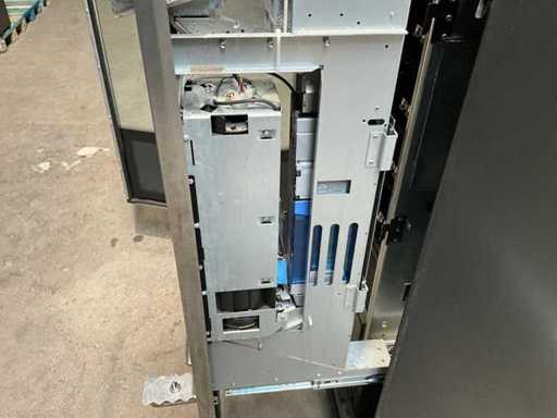 Distributeur de boissons gazeuses équipé d’un système de levage ; éclairage LED ; transmission automatique utilisée, signes d’usure présents ; refroidi ; inclus. Terminal payeur pour paiement sans contact ; incluant un changeur de pièces ;