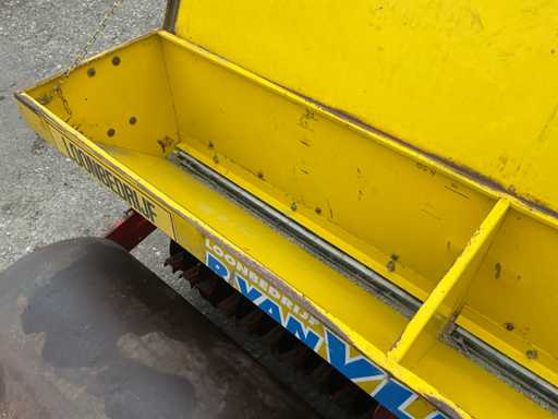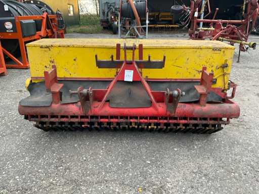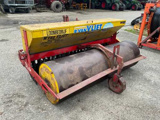 largeur de travail de 2000 mm ; Équipé de disques en V (2 disques par élément/20 éléments), dosage de semi réglable, connexion à 3 points, compteur analogique hectare, bac de stockage, rouleau de pression,
