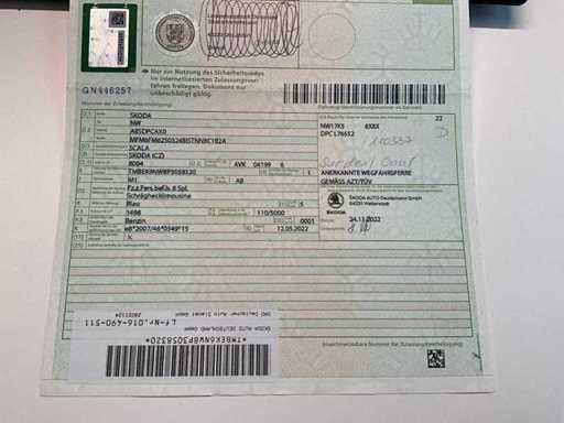 du véhicule - Marque / Modèle : Škoda Scala