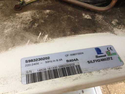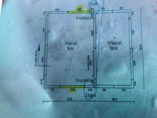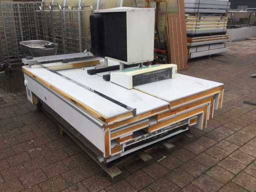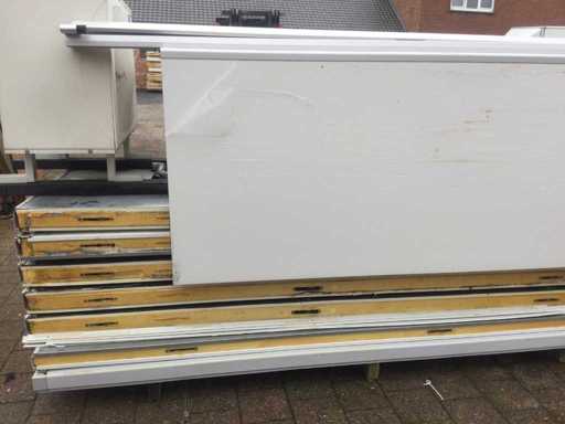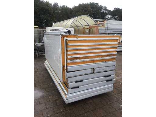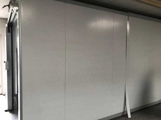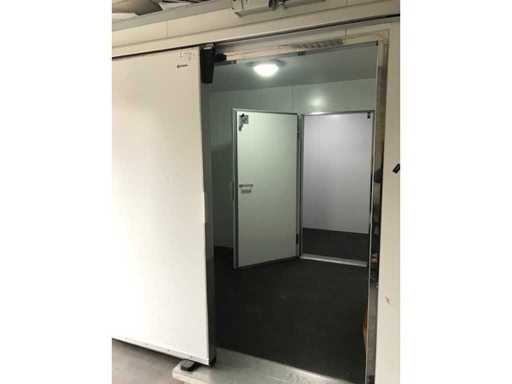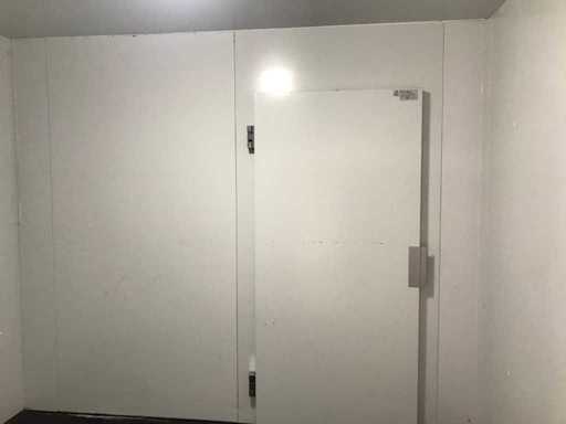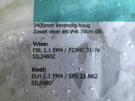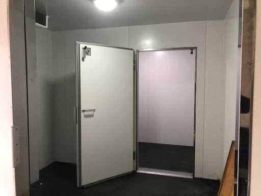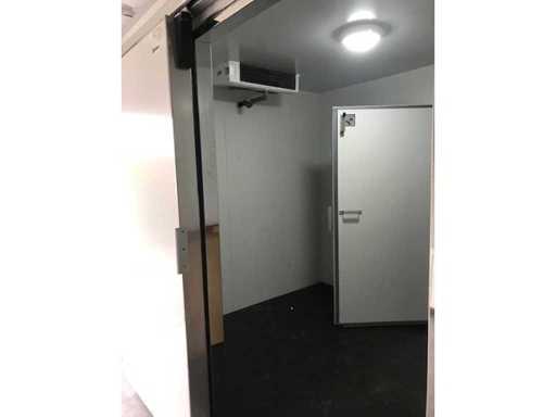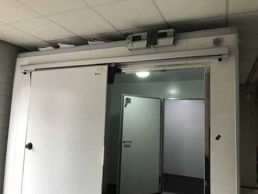 Combinaison d’un entrepôt frigorifique et d’une chambre de congélation ; avec porte coulissante ; avec 2 x moteur de refroidissement Silensys SIL2480Z pour chambre froide et SIL9480 pour chambre froide ; avec des strings ; avec des vaporisateurs ; isolation chambre froide de 8cm d’épaisseur ; congélateur isolant de 10 cm d’épaisseur ; sol et plafond de 10 cm d’épaisseur ;